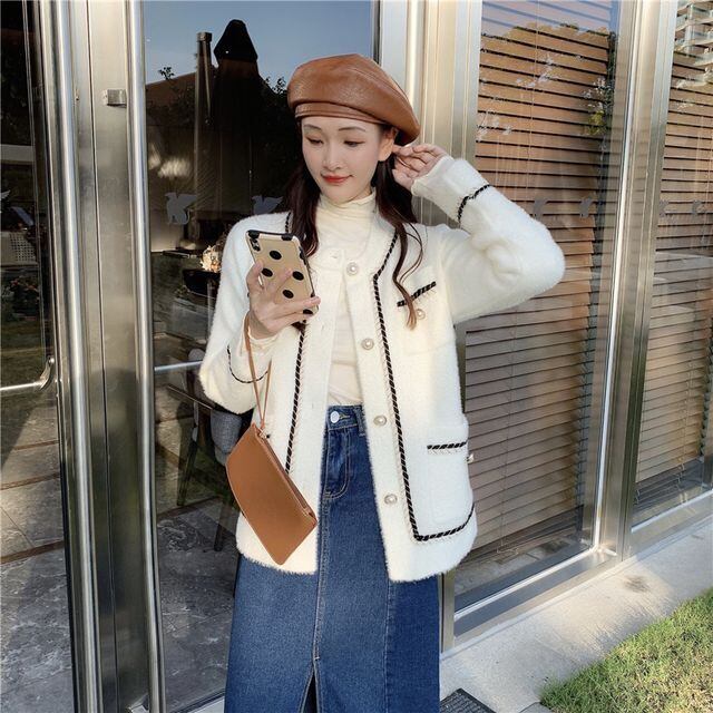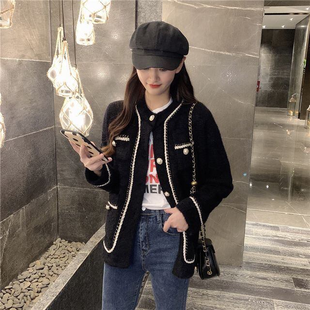【予約販売】ジャケット レディース アウター ツイードライン ジャケット ビジューボタン レトロ 秋 冬 ブラック ホワイト