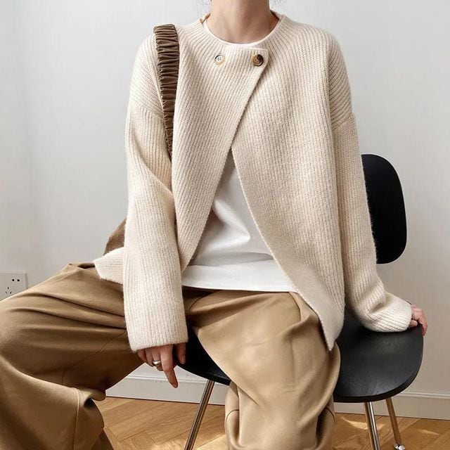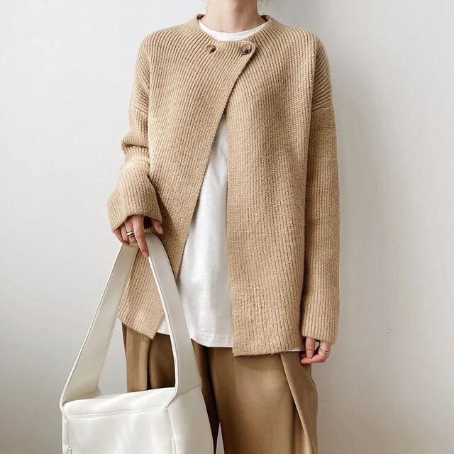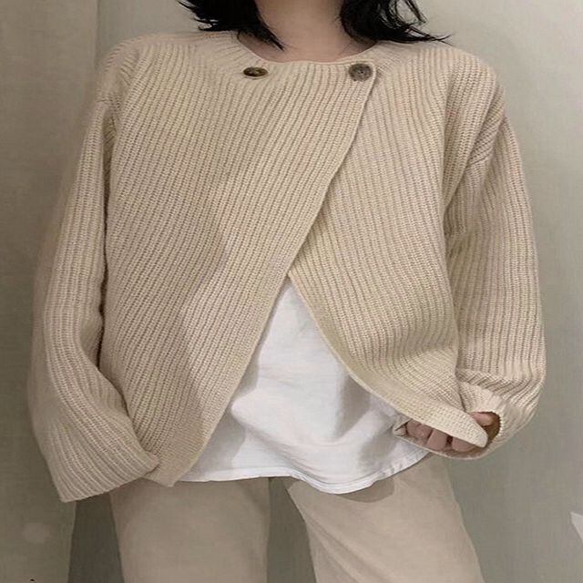 【予約販売】可愛い ポンチョ風 ツーボタン ニット カーディガン ニット カーディガン ボタン 秋 冬 ホワイト、ライトベージュ