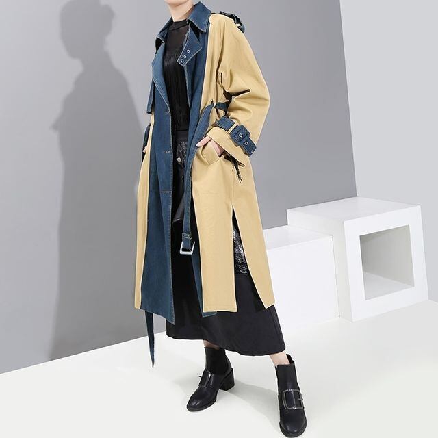 【予約販売】トレンチコート バイカラー 切り替え サイドスリット ミディアムロング丈 スプリングコート 春コート レディース アウター