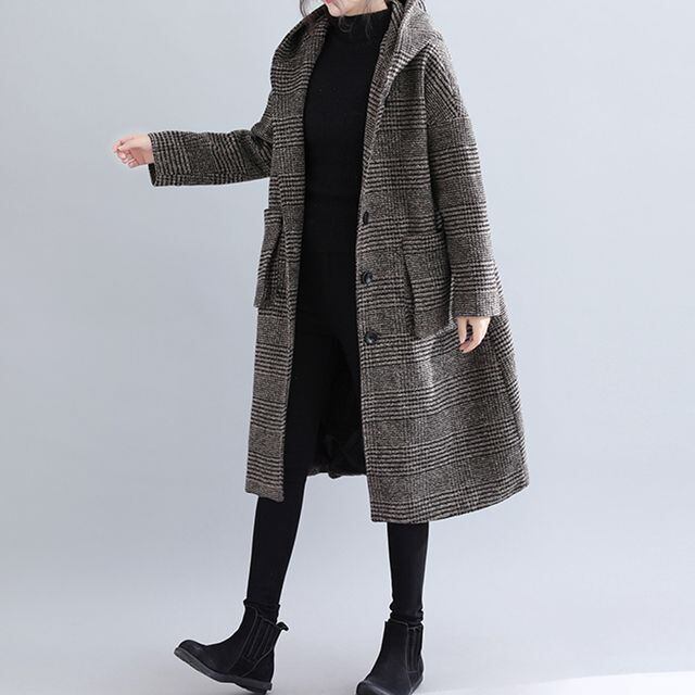 【予約販売】コート レディース フード付きコート グレンチェック ロング丈 カジュアル 秋冬アウター M/L/XL/2XL