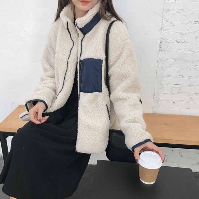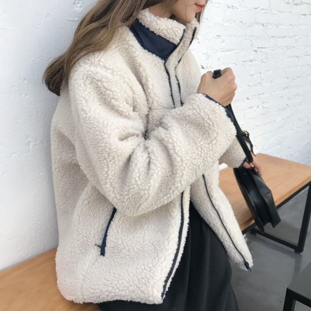 【予約販売】ボアブルゾン ボアコート もこもこ ふわふわ ジャケット ホワイト バイカラー 秋冬 レディース アウター M/L