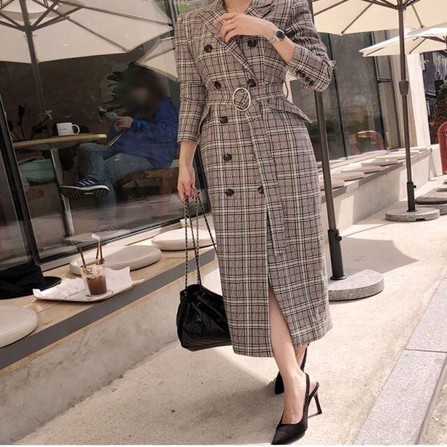 【予約販売】ロング コート グレンチェック シック アウター ベルト 長袖 トレンド シンプル きれいめ クラシカル エレガント デイリー 通勤 お出かけ