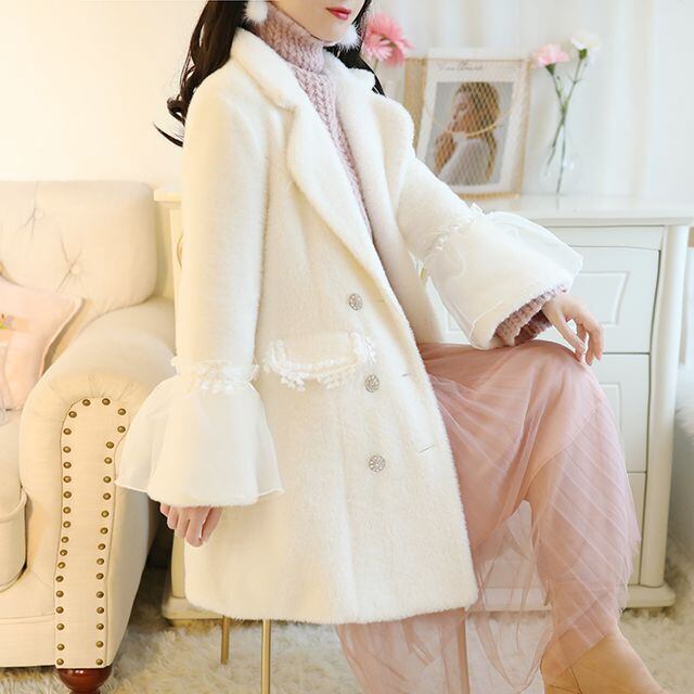 【予約販売】ロングコート ベルスリーブ シアー 袖コンシャス レース ビジューボタン レース トレンド ガーリー 甘め 大人かわいい デイリー お出かけ