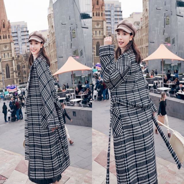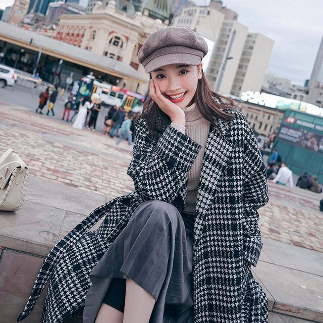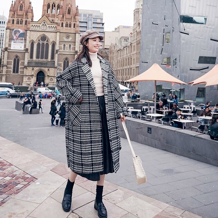 【予約販売】チェスターコート レディース コート 千鳥格子柄 ロング丈 大人可愛い モノトーン きれいめ ウエストマーク 秋冬 アウター こなれ感 S/M/L