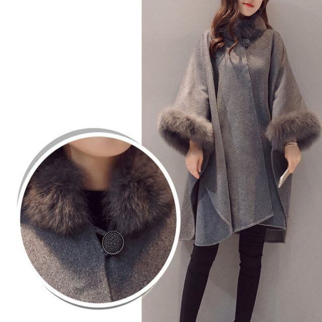 【予約販売】ポンチョコート レディース ケープ フェイクファー マント エレガント ブラック ベージュ グレー 秋冬 アウター 大人可愛い こなれ感 トレンド S/M/L/X/2XL/3XL