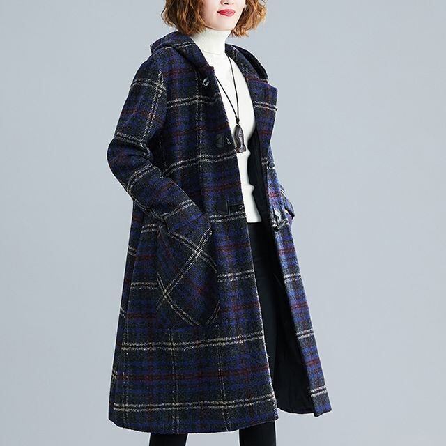 【予約販売】ダッフルコート レディース チェック柄 ロング丈 フード付き カジュアル ナチュラル 秋冬 アウター 大人可愛い こなれ感 トレンド L/XL