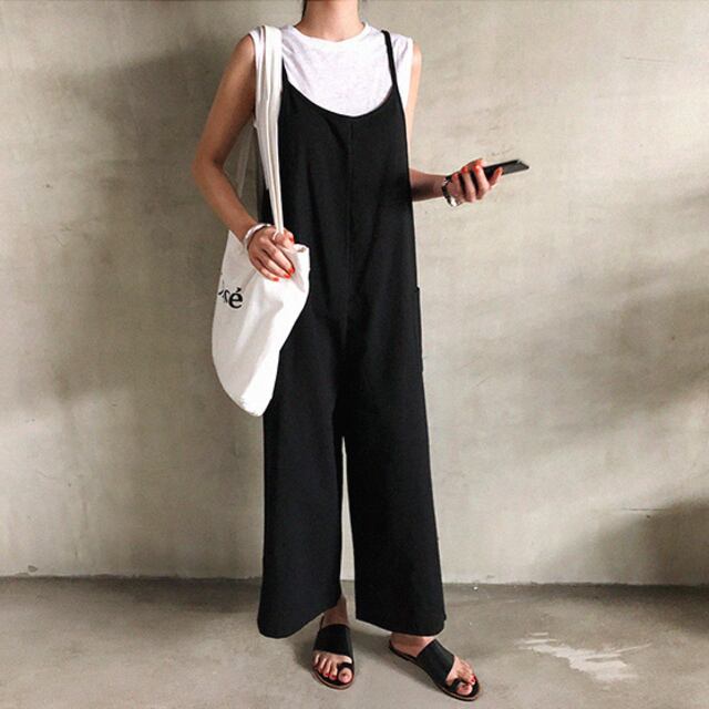 【予約販売】サロペット レディース オールインワン パンツ ワイドパンツ サスペンダー ルーズ ゆったり 無地 通勤 通学 オフィス OL 可愛い おしゃれ ブラック ベージュ こなれ感 韓国