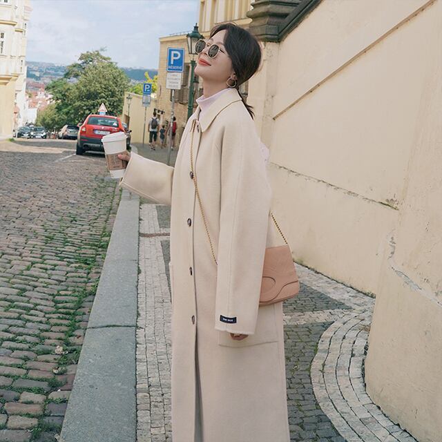 【予約販売】コート レディース 秋 冬 ロングコート 長袖 ビッグポケット クリーム ブルー S,M,L