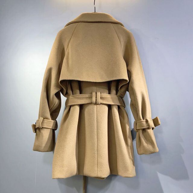 【予約販売】コート レディース 秋 冬 ストラップ付オープンコート キャメル S,M,L ウエストベルト
