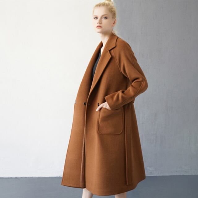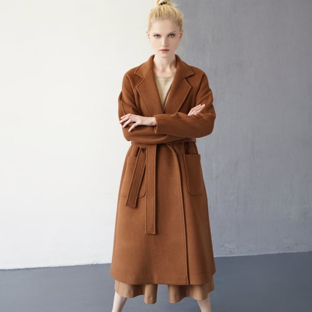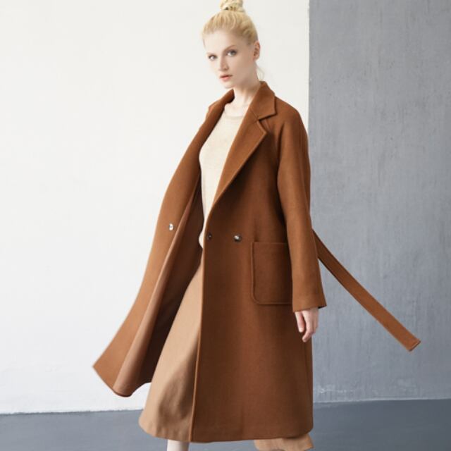 【予約販売】コート レディース 秋 冬 ロングコート ウール ウエストベルト キャメル S/M/L
