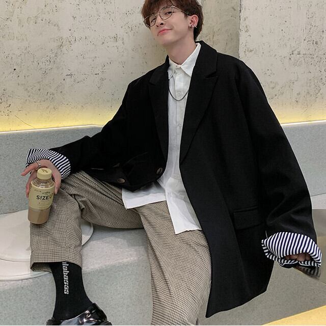 メンズジャケット ストライプアクセント オーバーサイズ 全3色 ベージュ/ブラック/ブルー M/L/XL/2XL