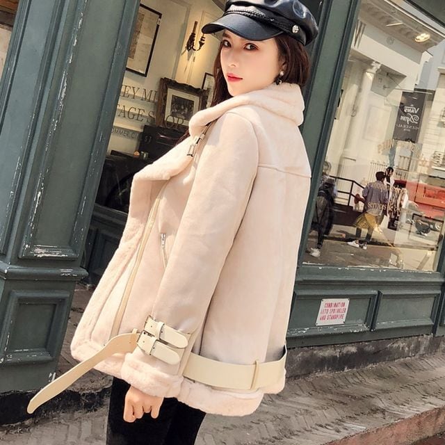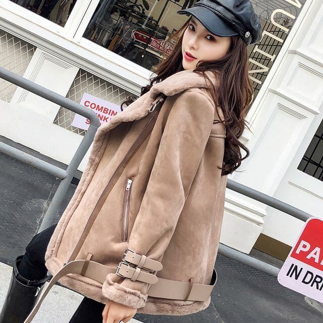 【予約販売】ボアライダースジャケット レディース ショート丈 裏ボア ブラック ベージュ アプリコット カジュアル 秋冬 アウター おしゃれ こなれ感 韓国 S/M/L/XL/2XL