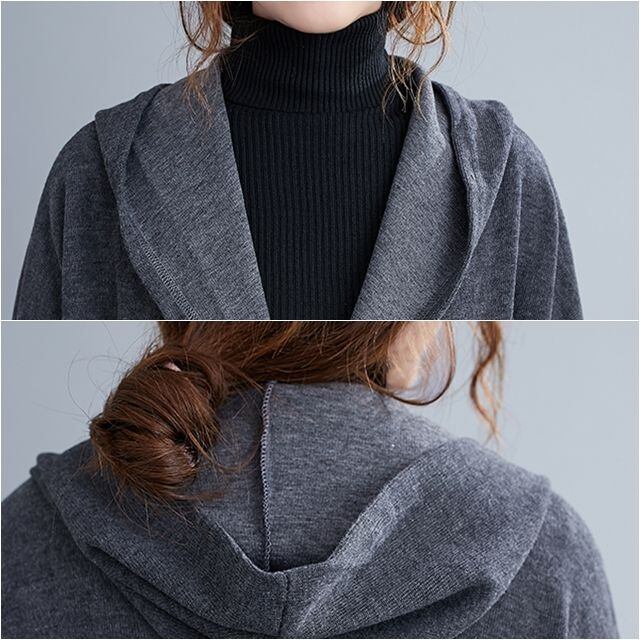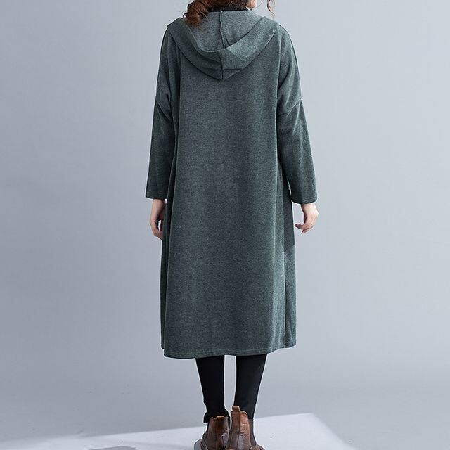 【予約販売】ノーカラーコート レディース ロング丈 フード付き ブラック グリーン グレー カジュアル 秋冬 アウター シンプル おしゃれ こなれ感 韓国
