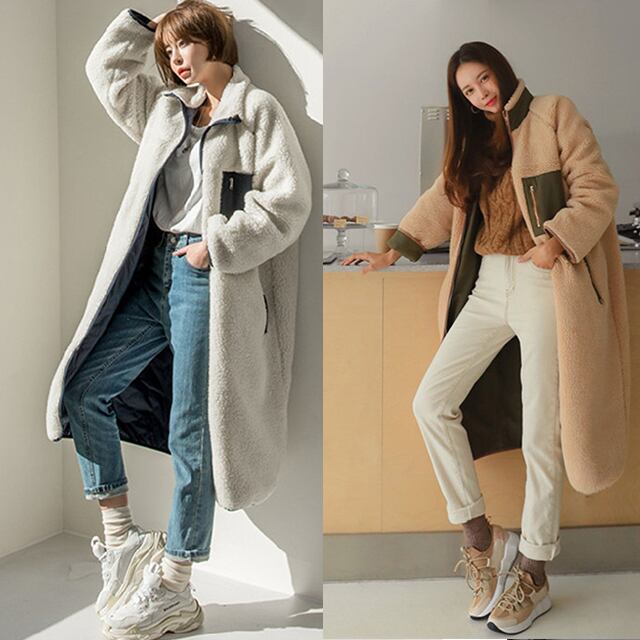 【予約販売】 レディース コート 秋 冬 ルーズコート 長袖 グリーン ブラック ボアジャケット リバーシブル M,L,XL,2XL