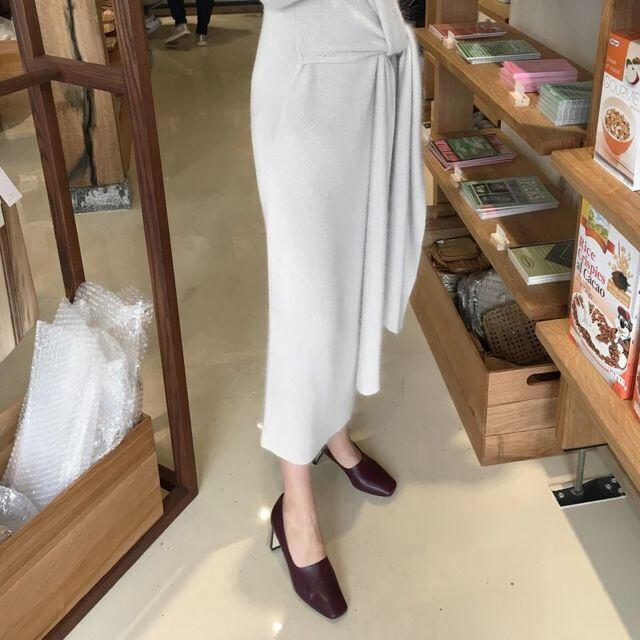 印象的なニットワンピース。