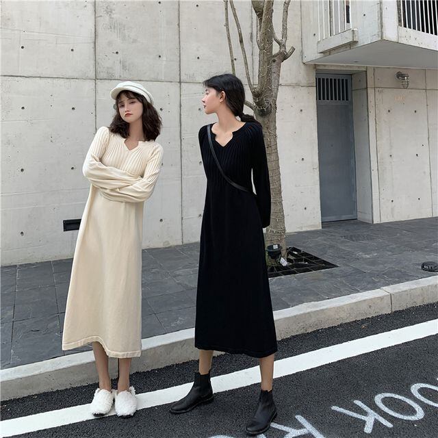 【予約販売】ニットワンピース レディース ボリューム袖 Vネック バルーン袖 細見え ブラック アイボリー お呼ばれ きれいめ 秋冬 ワンピ 大人可愛い エレガント おしゃれ こなれ感 韓国 S/M/L
