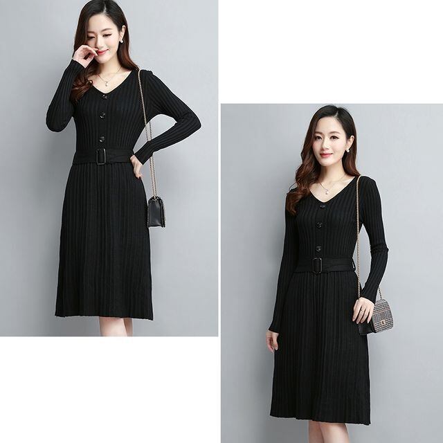 【予約販売】リブニットワンピース レディース ウエストベルト ひざ丈 ウエストマーク 細見え ブラック ベージュ お呼ばれ きれいめ 秋冬 ワンピ 大人可愛い エレガント おしゃれ こなれ感 韓国 S/M/L/XL/XL/2XL
