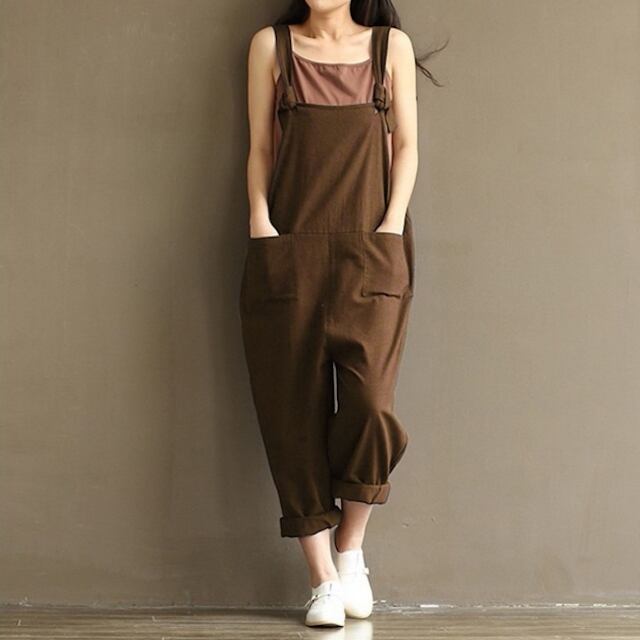 【予約販売】サロペット レディース ワイドレッグ パンツ ワイドレッグパンツ ルーズ レトロ 無地 ゆったり オーバーオール リボン マタニティ ネイビー ブラック ブラウン 綿 リネン シンプル M/L/XL/2XL/3XL