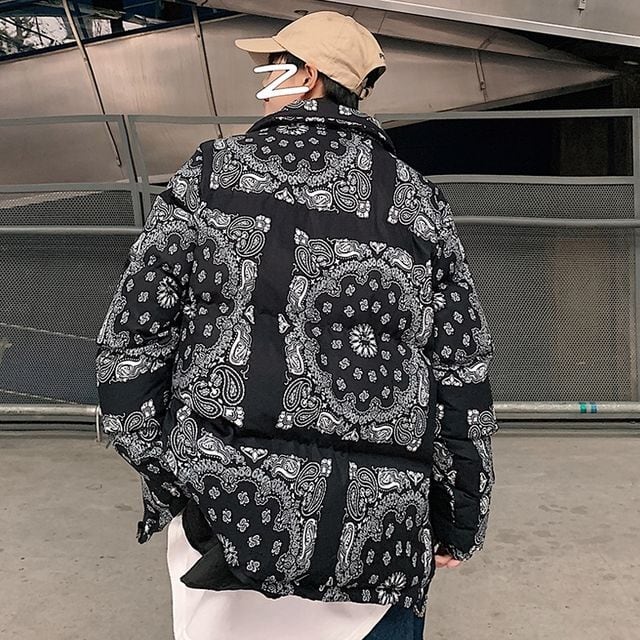 【予約販売】ペイズリー柄ダウンコート ジャケット メンズ バンダナ柄 厚手 アウトドア 中綿 防寒 お洒落 カジュアル 秋冬 暖かい 大きいサイズ M/L/XL/2XL/3XL/4XL/5XL
