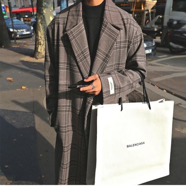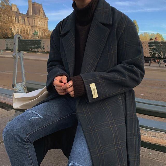 【予約販売】チェック柄ロングコート チェスター ロング丈 メンズ シック グレー ウエストマーク 防寒 お洒落 秋冬 暖かい 大きいサイズ M/L/XL