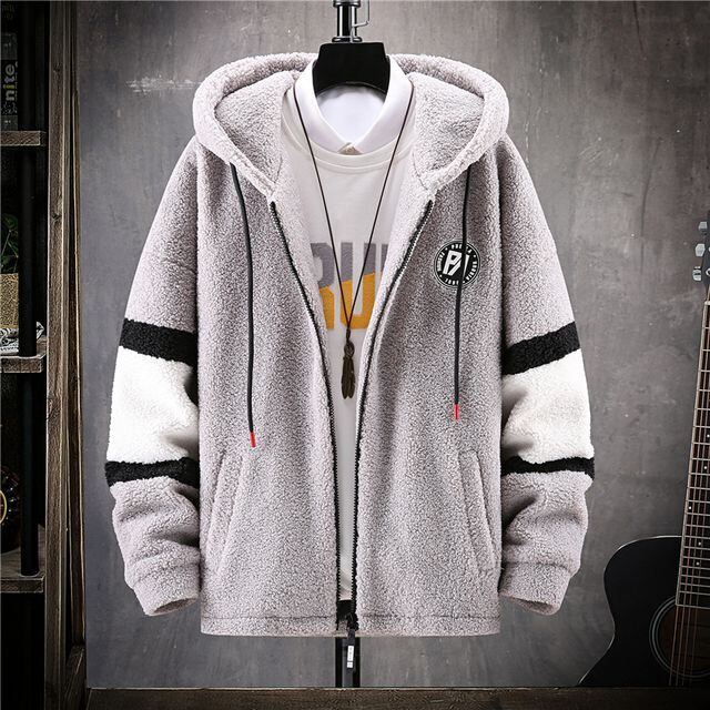 【予約販売】ボアジャケット アウター ボアコート フード付き メンズ ブラック グレー カーキ 防寒 お洒落 カジュアル ベーシック 秋冬 大きいサイズ M/L/XL/2XL/3XL