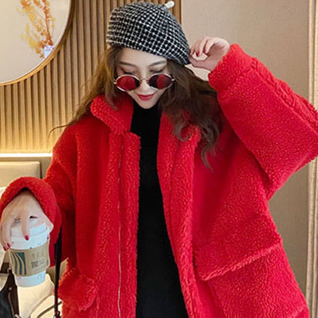 【予約販売】ボアブルゾン コート レディース 秋 冬 ショートコート 長袖 フェイクファー ホワイト キャメル ダークブラウン レッド S/M/L