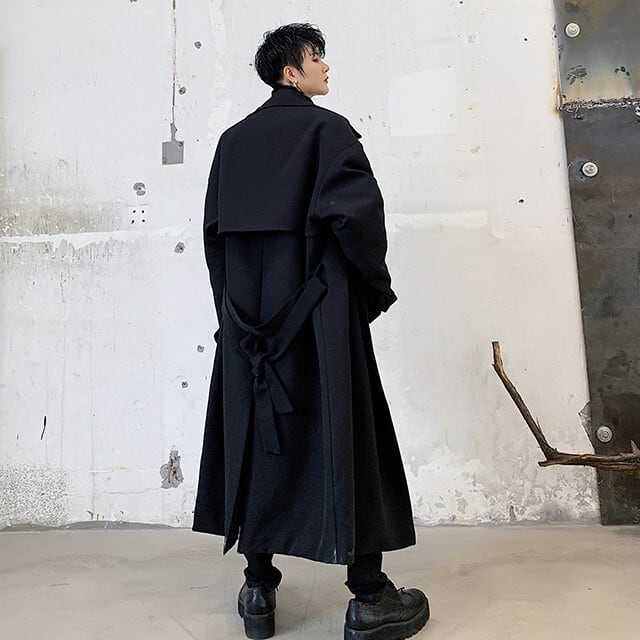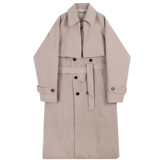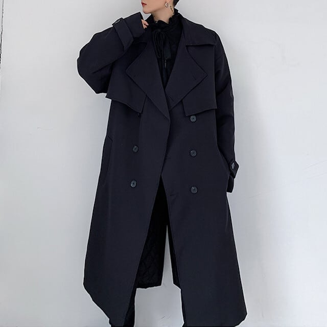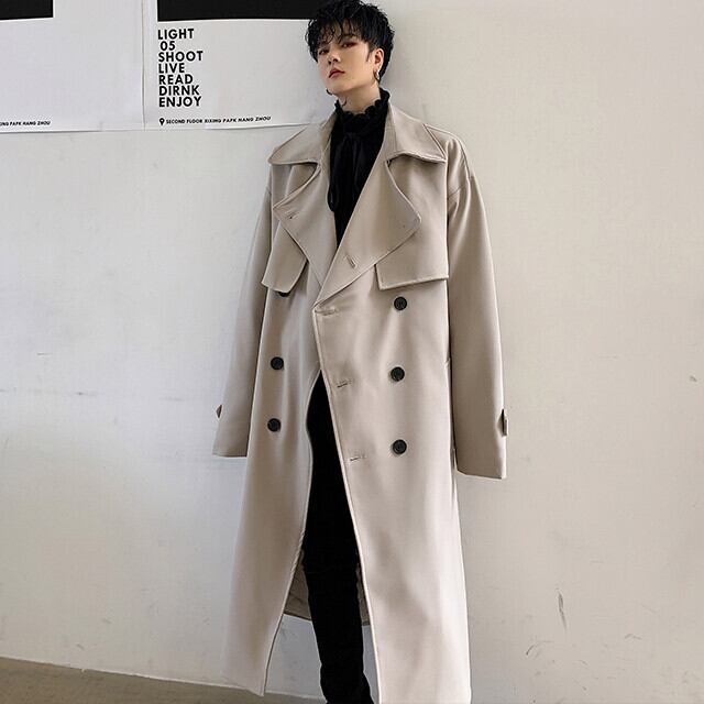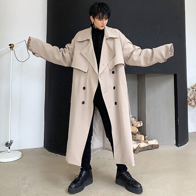 全2色 メンズ アウター 無地 中綿 トレンチコート ダブル ボタン ロング丈 サイズ展開豊富 ベージュ/ブラック XS/S/M/L/XL/2XL