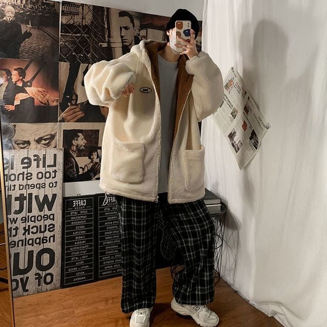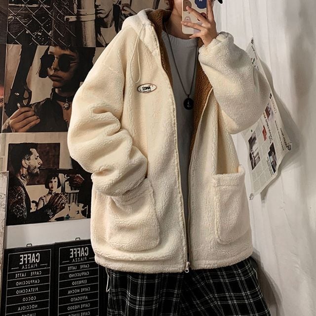 【予約販売】ボアブルゾン フード付き アウター ボアジャケット ショート丈 メンズ グレー ブルー アイボリー 防寒 お洒落 カジュアル ベーシック 秋冬 大きいサイズ S/M/L/XL/2XL