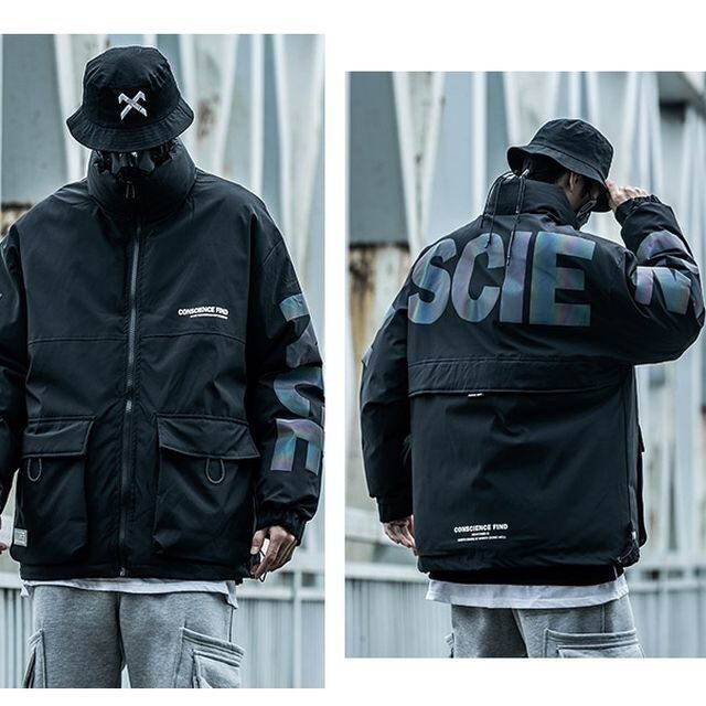 【予約販売】ナイロンジャケット アウター ブルゾン バックプリント 反射プリント ショート丈 メンズ ブラック グレー 防寒 お洒落 カジュアル 秋冬 大きいサイズ M/L/XL/2XL