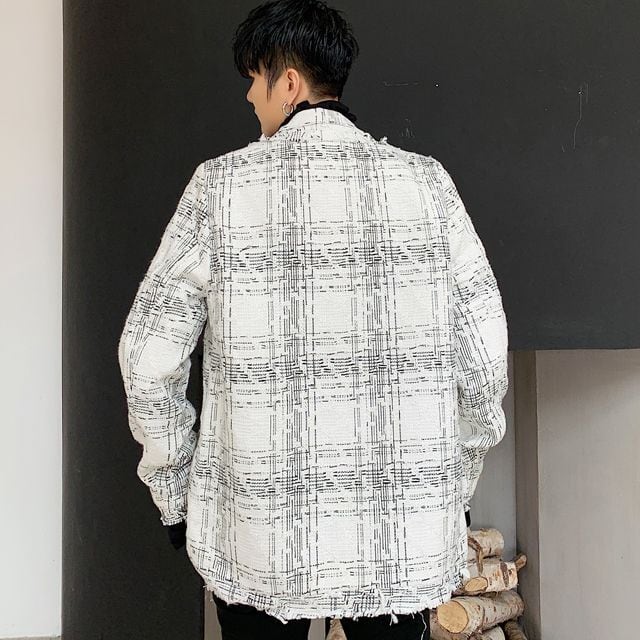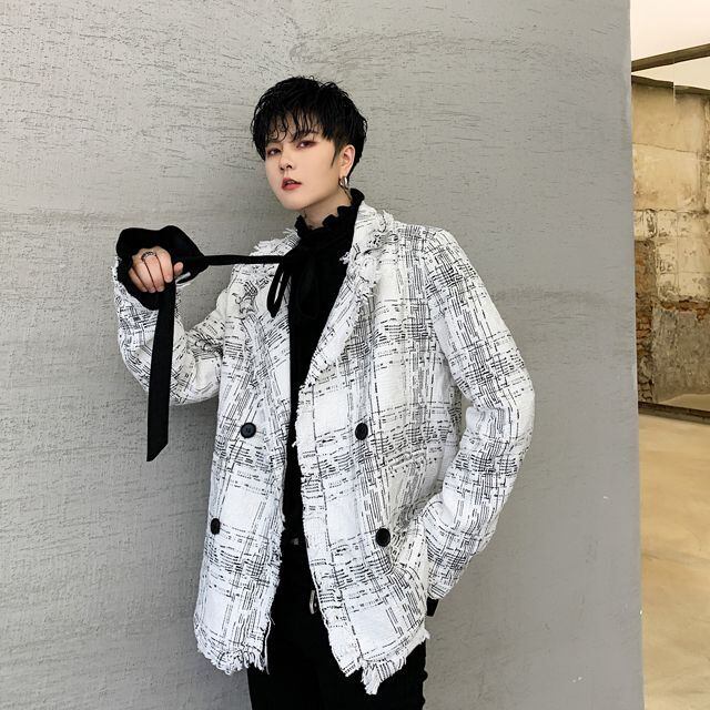 【予約販売】チェック柄コート ジャケット アウター ショート丈 メンズ ホワイト 防寒 お洒落 こなれ感 ベーシック 秋冬 大きいサイズ M/L/XL/2XL