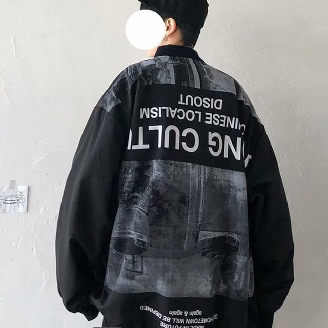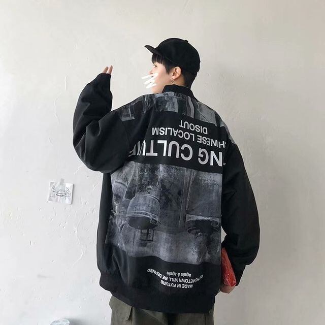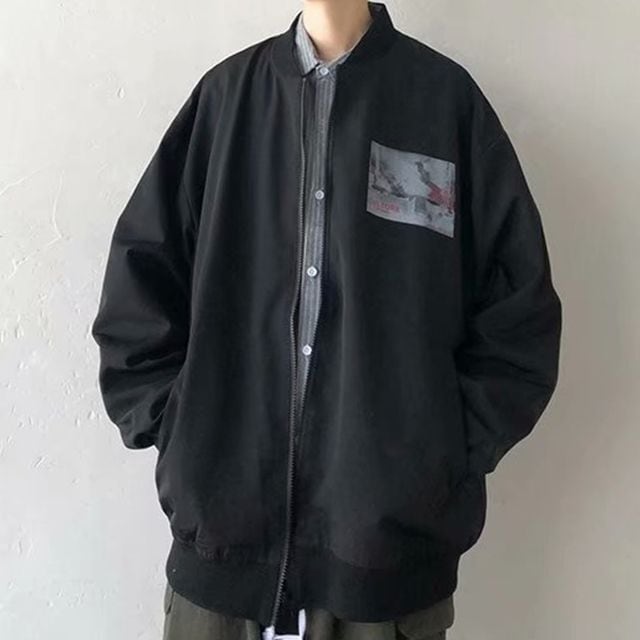 【予約販売】MA-1ジャケット アウター ブルゾン バッグプリント ショート丈 メンズ グレー ブラック 防寒 お洒落 カジュアル ベーシック 秋冬 大きいサイズ M/L/XL/2XL/3XL/4XL/5XL