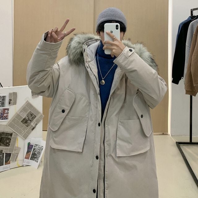 【予約販売】モッズコート アウター ミリタリー ロング丈 メンズ ファーフード付き ブラック グレー カーキ 防寒 お洒落 こなれ感 ベーシック 秋冬 大きいサイズ M/L/XL