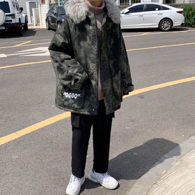 【予約販売】迷彩柄ジャケット コート アウター カモフラージュ ミリタリー メンズ ファーフード付き グレー カーキ 防寒 お洒落 こなれ感 ベーシック 秋冬 大きいサイズ M/L/XL/2XL/3XL/4XL/5XL