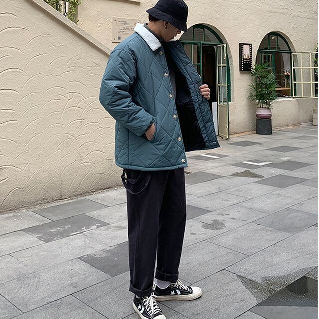 【予約販売】キルティングジャケット 襟ボア アウター ブルゾン メンズ ブラック グリーン 防寒 お洒落 こなれ感 ベーシック 秋冬 大きいサイズ M/L/XL