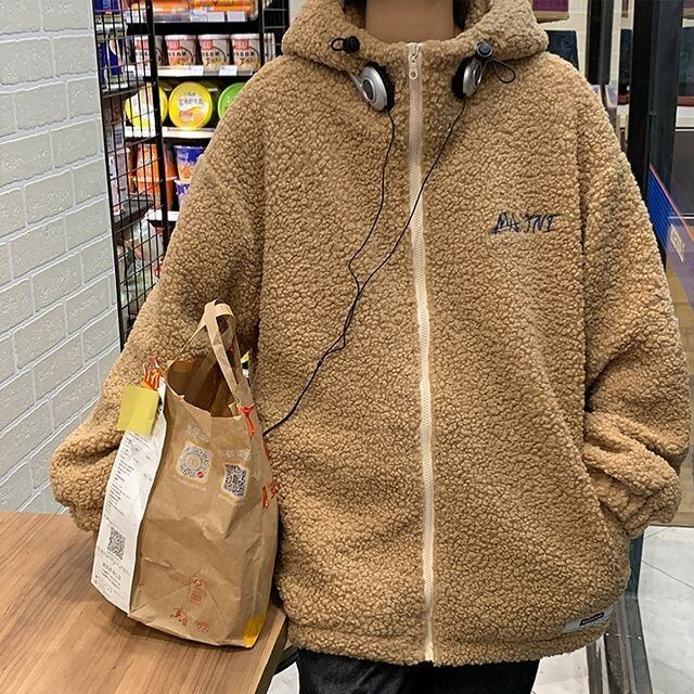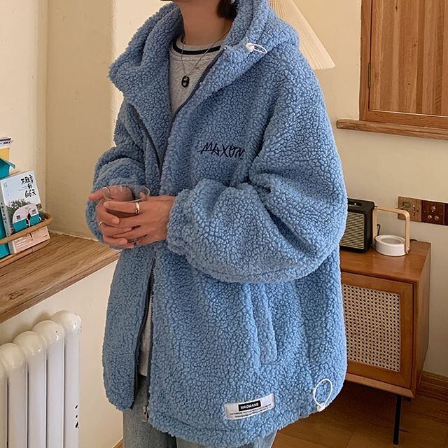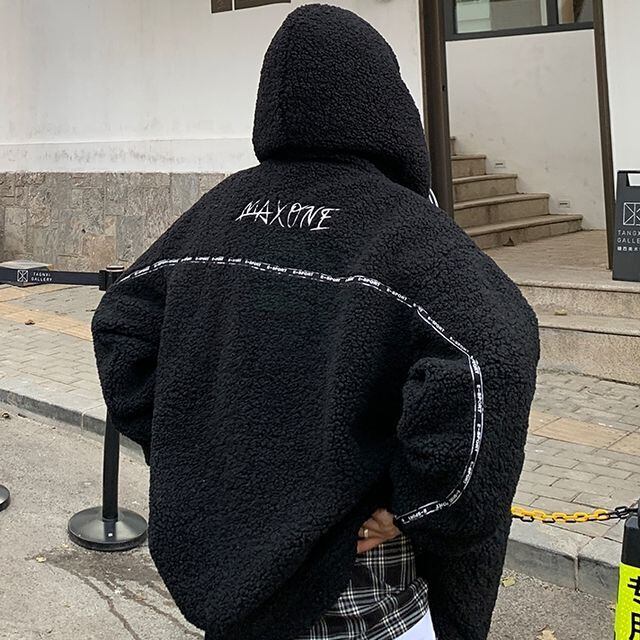 【予約販売】ボアジャケット アウター ブルゾン メンズ ストリート ファーフード付き ベージュ ブラック ブルー 防寒 お洒落 こなれ感 ベーシック 秋冬 大きいサイズ M/L/XL/2XL