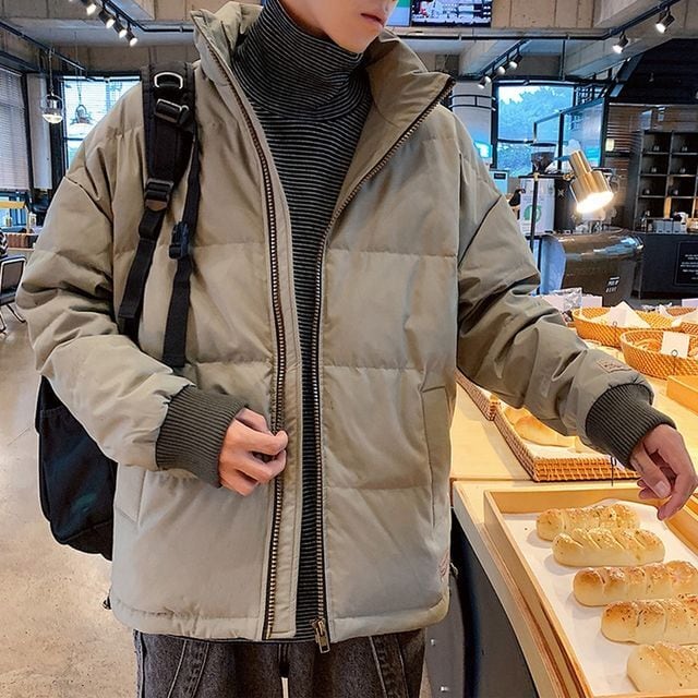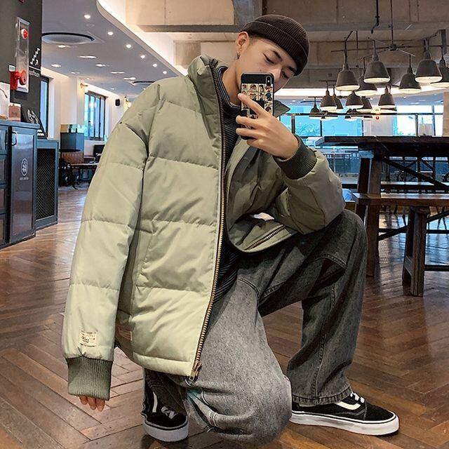 【予約販売】ダウンジャケット アウター 無地 袖ロゴ ショート丈 ブラック カーキ オレンジ メンズ 防寒 お洒落 カジュアル 秋冬 大きいサイズ M/L/XL/2XL/3XL