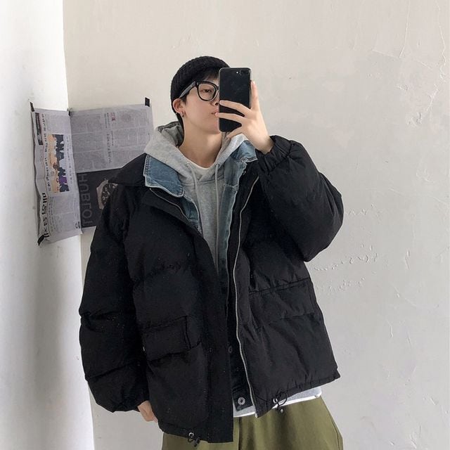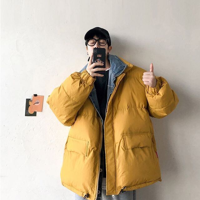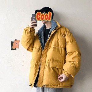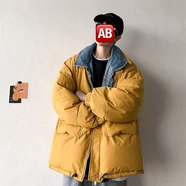 【予約販売】ダウンジャケット 重ね着風 アウター デニム Gジャン ストリート ショート丈 ブラック イエロー グレー 防寒 お洒落 カジュアル 秋冬 大きいサイズ M/L/XL/2XL