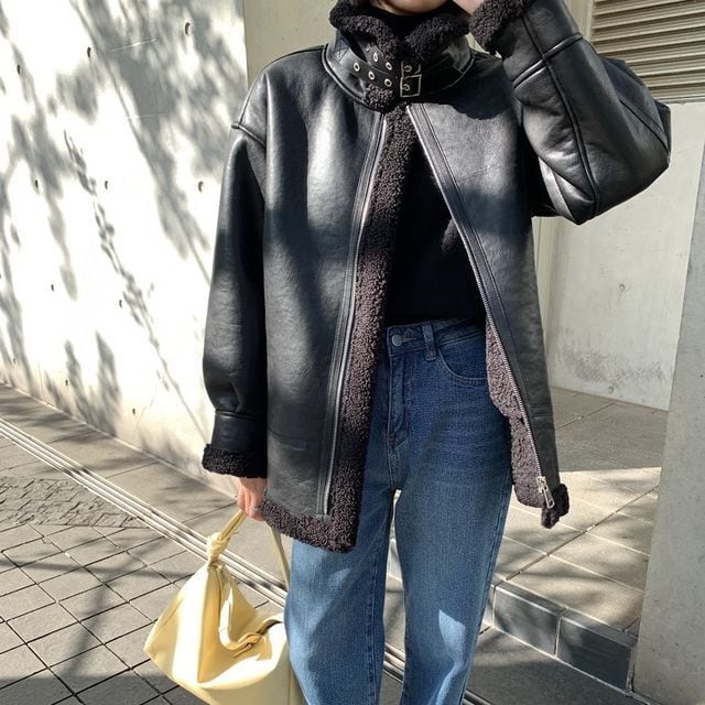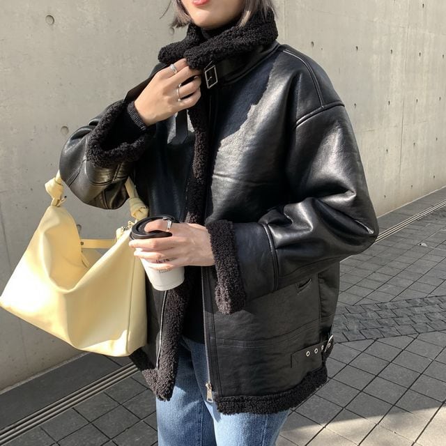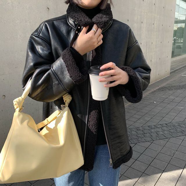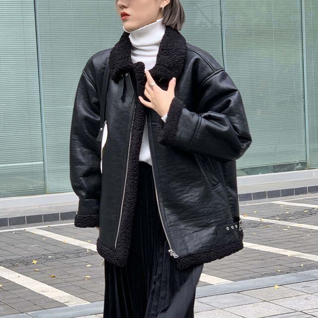 【予約販売】ライダースジャケット レディース ショート丈 裏ボア レザー ブラック カジュアル 秋冬 アウター おしゃれ こなれ感 韓国 M/L