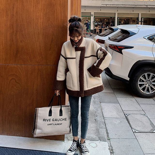 【予約販売】ライダースジャケット レディース ショート丈 ボア ムートン調 オーバーサイズ カジュアル 秋冬 アウター おしゃれ こなれ感 韓国 S/M/L/XL