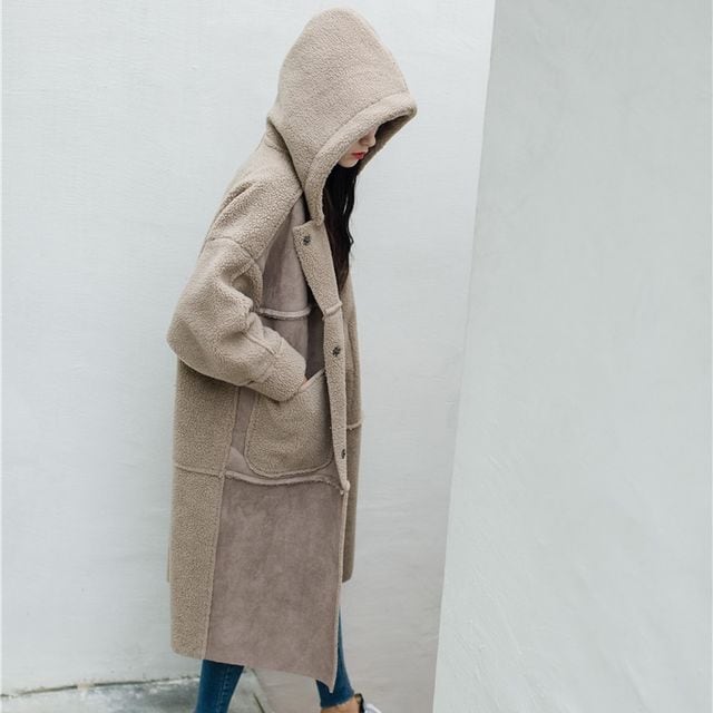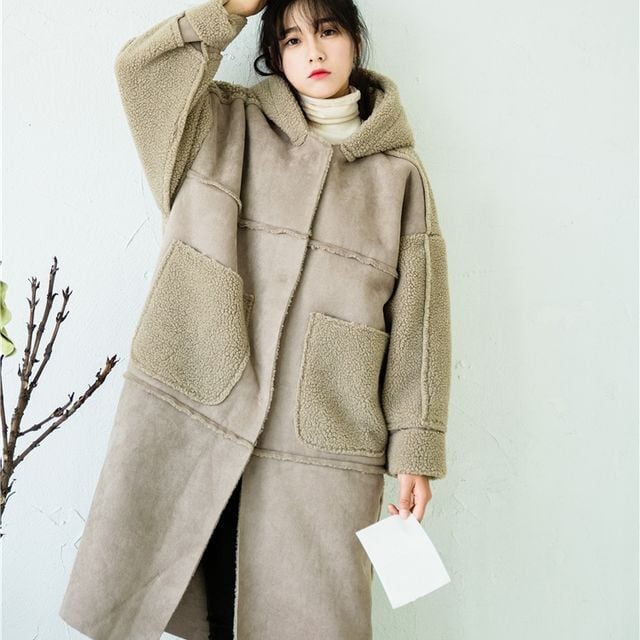 【予約販売】ボアコート レディース ロング丈 裏ボア フード ムートン調 ベージュ カジュアル 秋冬 アウター おしゃれ こなれ感 韓国 S/M/L