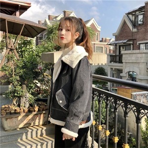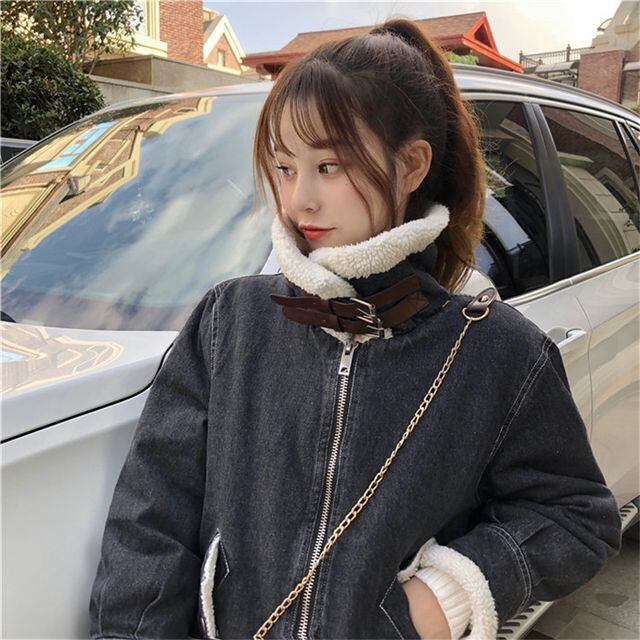 【予約販売】デニムライダースジャケット レディース ショート丈 ボア ムスタン ブラック カジュアル 秋冬 アウター おしゃれ こなれ感 韓国 大きいサイズ S/M/L/XL/2XL/3XL