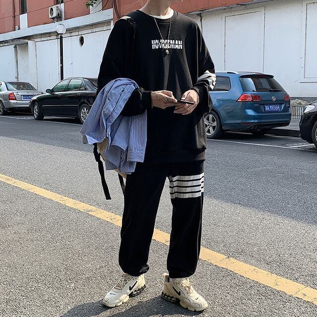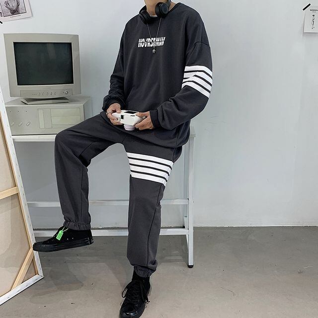 【予約販売】メンズ セットアップ 上下 ライン ブラック グレー 長袖 こなれ感 スポーツウエア カジュアル 秋冬 大きいサイズ M/L/XL/2XL/3XL/4XL/5XL