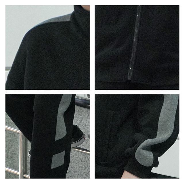 【予約販売】メンズ セットアップ 上下 バイカラーライン ブラック グレー ネイビー 長袖 ジャージ ジム スポーツウエア カジュアル 秋冬 大きいサイズ M/L/XL
