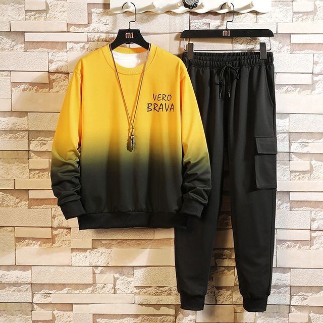 【予約販売】メンズ セットアップ 上下 グラデーション ホワイト イエロー ブルー ピンク 長袖 こなれ感 スポーツウエア カジュアル 秋冬 大きいサイズ M/L/XL/2XL/3XL/4XL/5XL