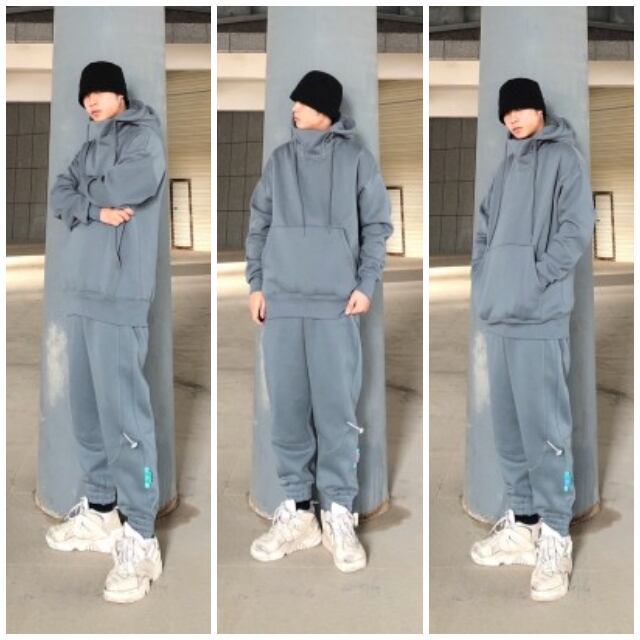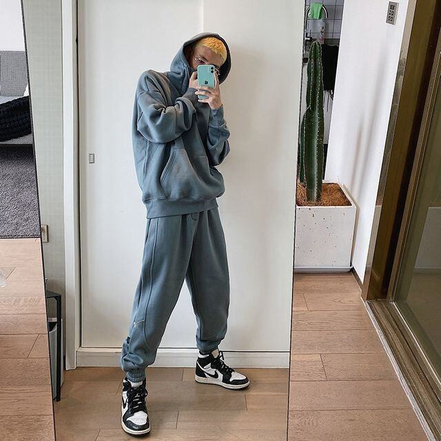 【予約販売】メンズ セットアップ 上下 スエット 裏起毛 フード付き 無地 ブルー グレー ブラック 長袖 防寒 ジム スポーツウエア カジュアル 秋冬 大きいサイズ M/L/XL