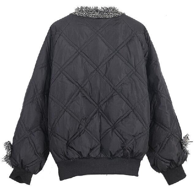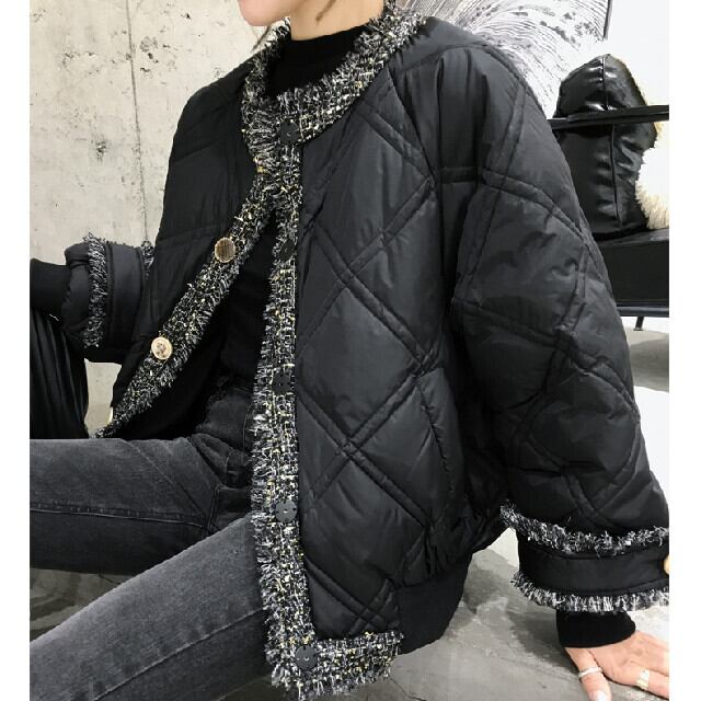 全2色 レディース アウター ダウンジャケット ツイードデザイ ンキルティングダウンジャケット ボタン 可愛い おしゃれ ブラック/ホワイト S/M/L