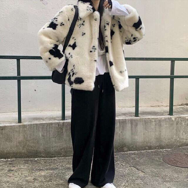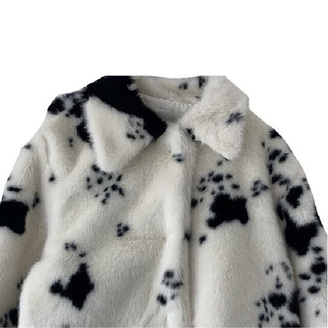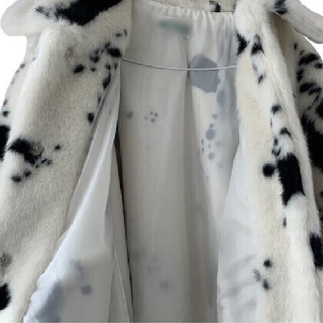 全2色 レディース アウター エコファー アニマル柄 ダルメシアン カウ 人気 ファージャケット ショート丈 秋冬 ブラック アイボリー