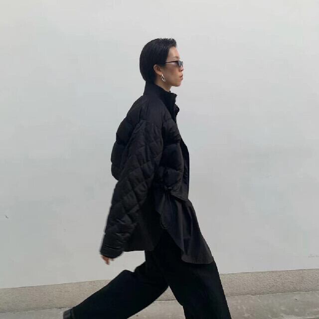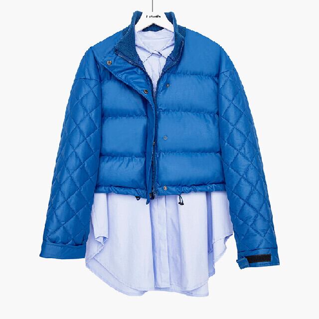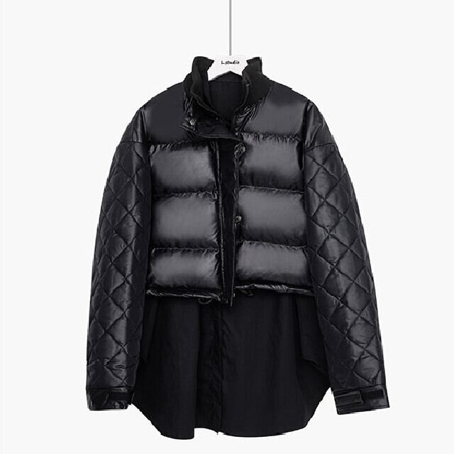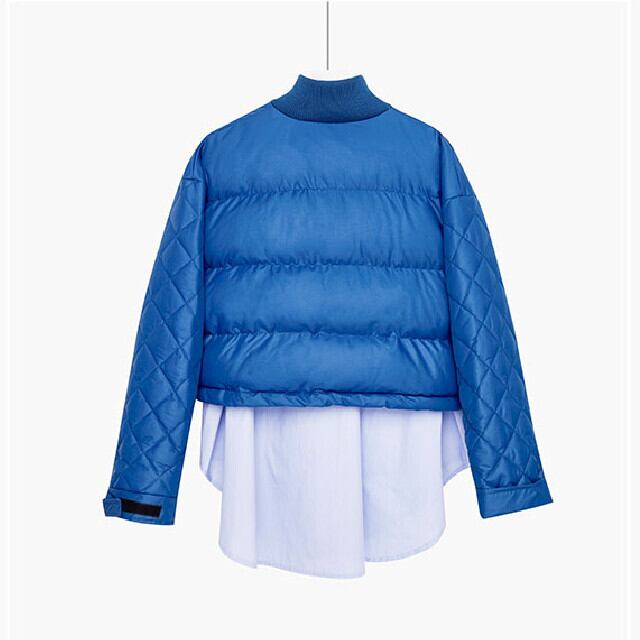 全2色 レディース アウター ダウン シャツ ドッキング ダウンジャケット キルティング レイヤード 秋冬 ブラック/ブルー S/M