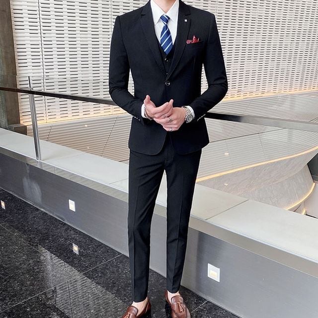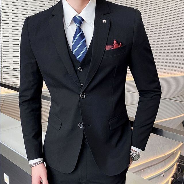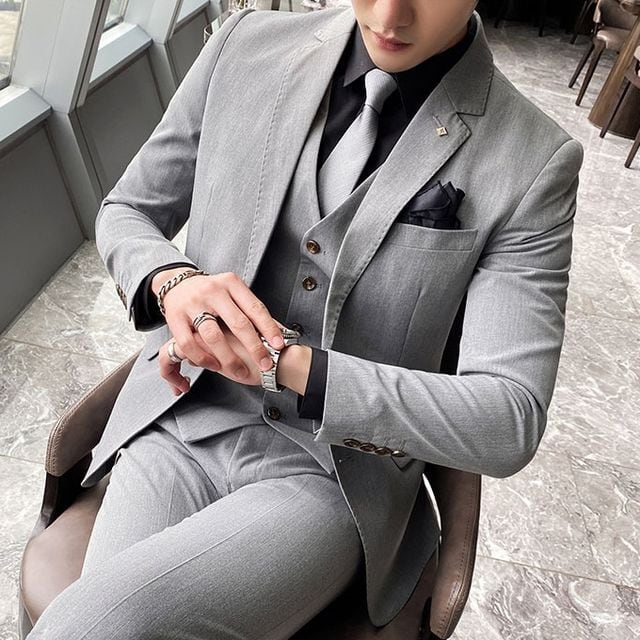 【予約販売】メンズ スーツ ベスト 3点セット チェック柄 グレー ネイビー スリーピース ジャケット パンツ セット セットアップ パーティ 二次会 同窓会 結婚式 韓国 トレンド S/M/L/XL/2XL/3XL/4XL/5XL
