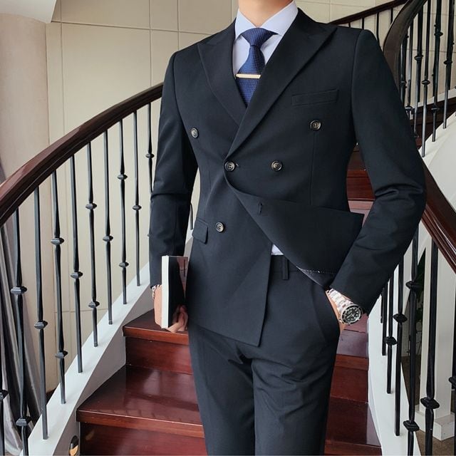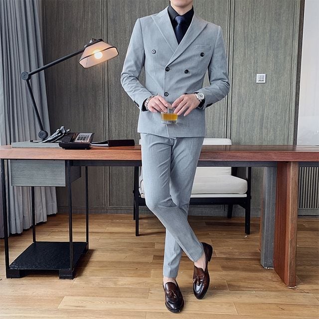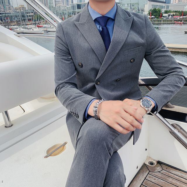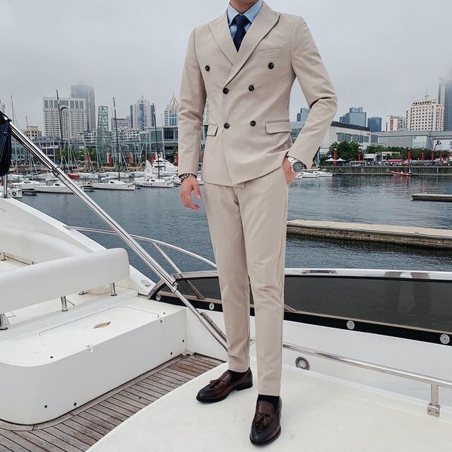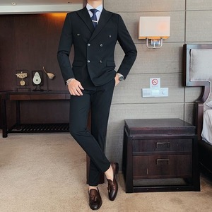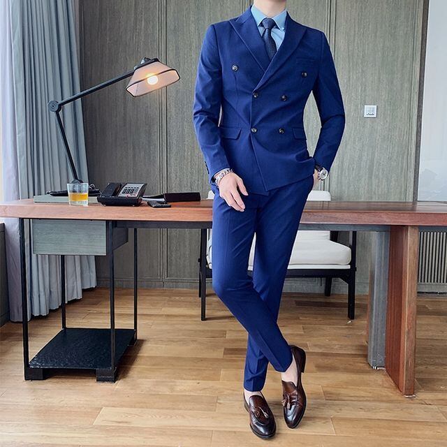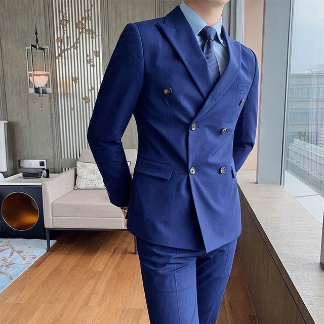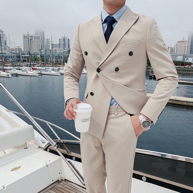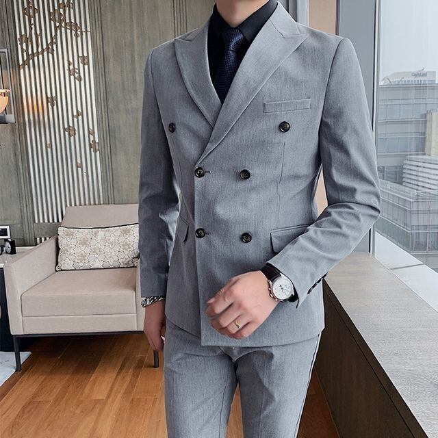 【予約販売】メンズ スーツ ダブル 無地 シック ブラック ベージュ ブルー グレー ジャケット パンツ セット セットアップ パーティ 二次会 同窓会 結婚式 韓国 トレンド M/L/XL/2XL/3XL/4XL
